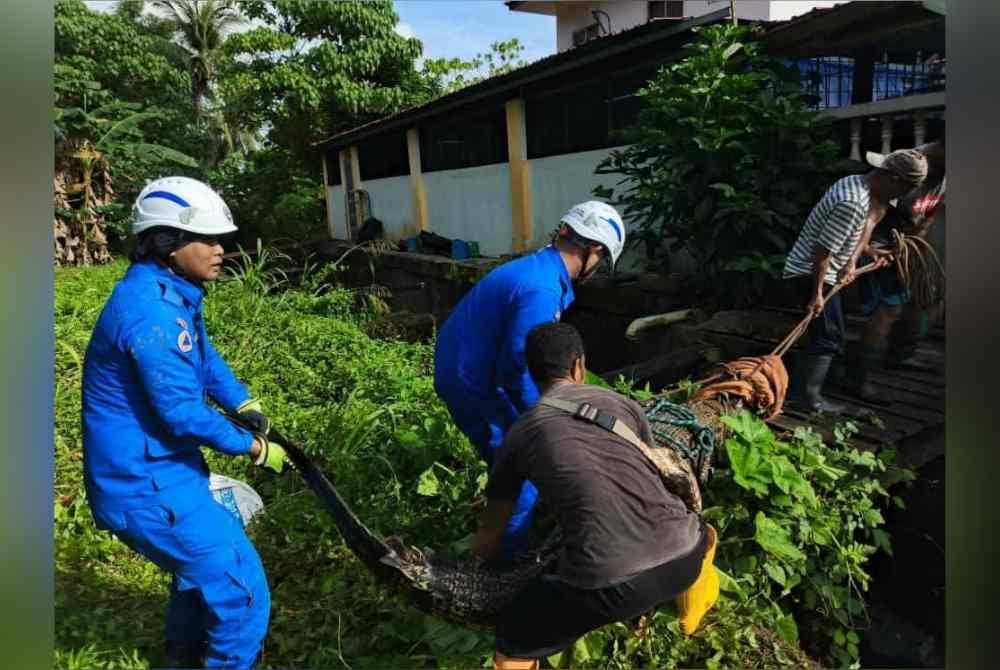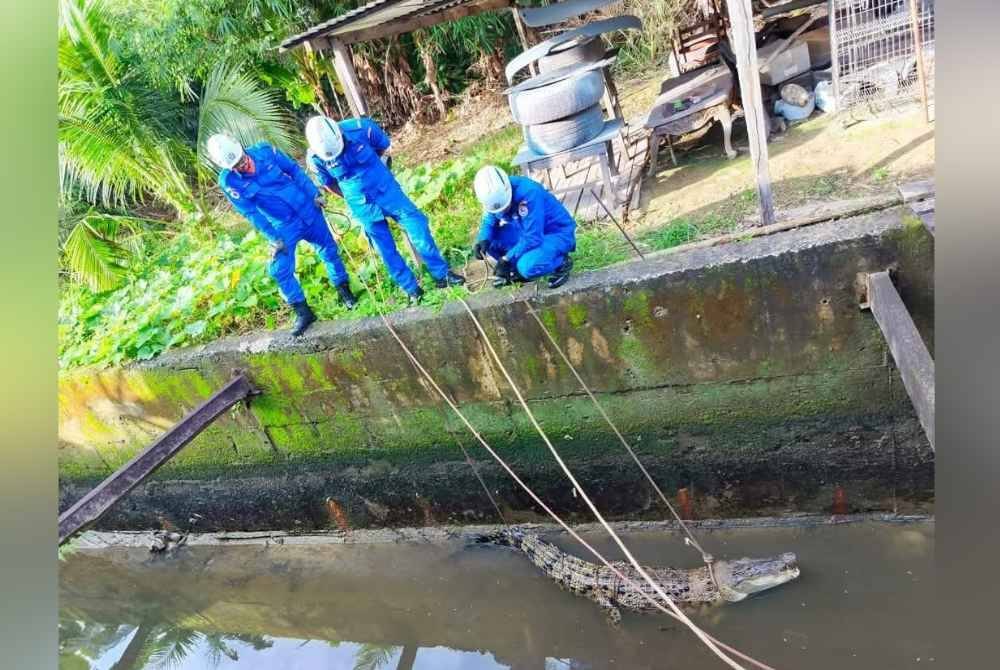 "Sebaik tiba, pemeriksaan dilakukan dan mendapati buaya tersebut berada di dalam parit besar belakang rumah pengadu.