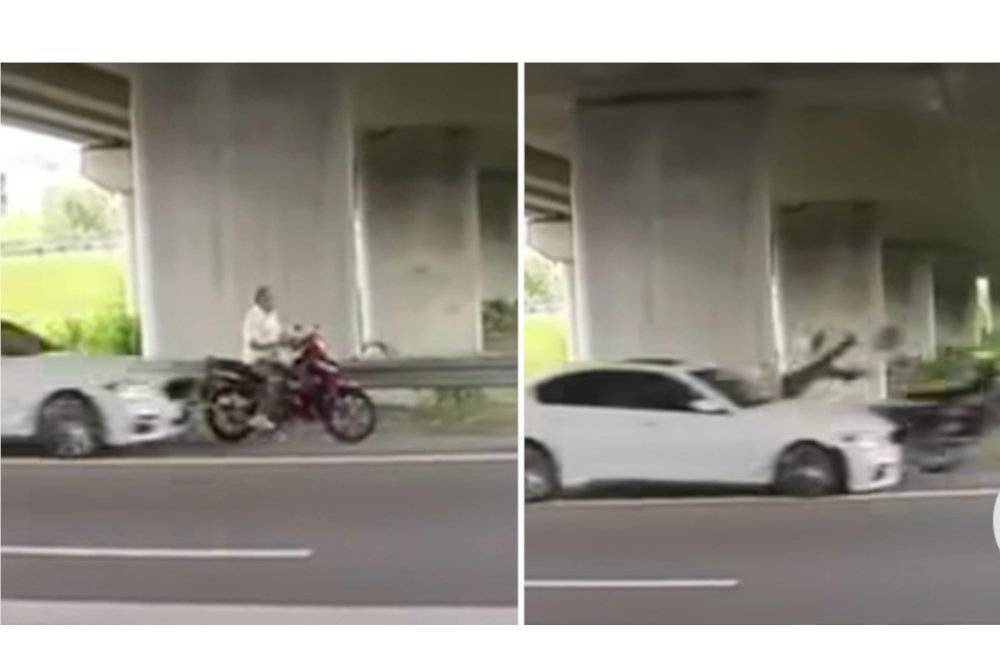 "Siasatan awal mendapati penunggang motosikal berhenti di lorong kecemasan di bawah jejambat untuk berteduh telah dirempuh dari belakang oleh sebuah kereta.