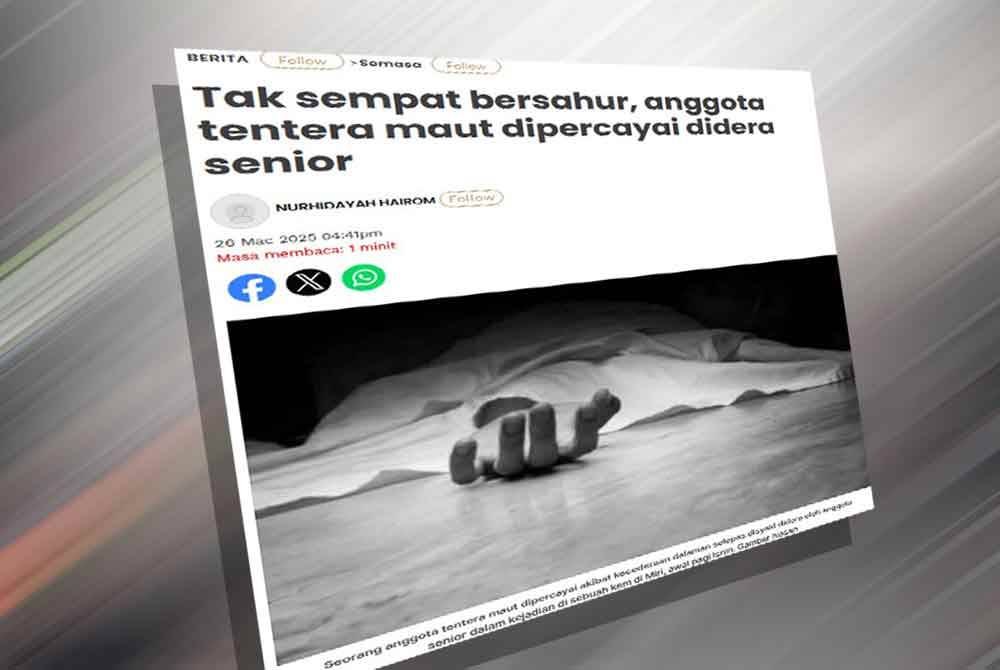 Dalam satu kenyataan pada Rabu, Sel Perhubungan Raya Markas Tentera Darat Malaysia memaklumkan bahawa mangsa, Prebet Muhammad Muqriz Aseri, 21, meninggal dunia akibat kerosakan pada jantung susulan hentakan tersebut.