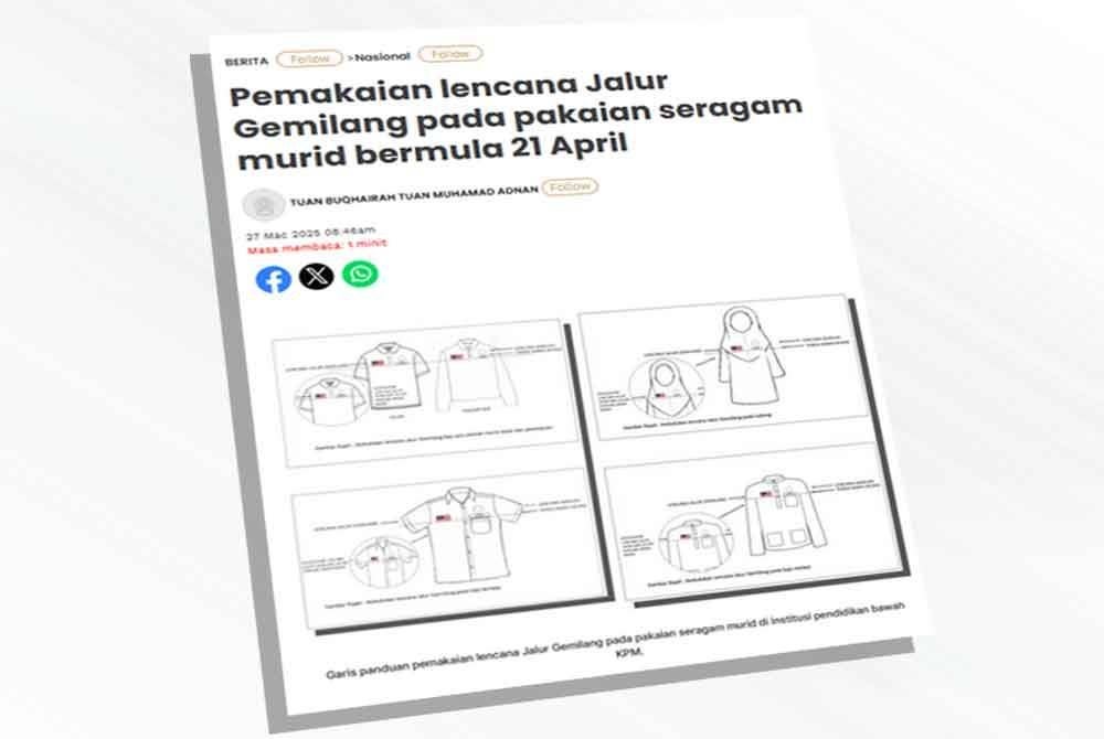 “Maklumat lanjut spesikasi lencana boleh didapati dalam Garis Panduan Pemakaian Lencana Jalur Gemilang pada Pakaian Seragam Murid di Institusi Pendidikan bawah KPM yang disertakan bersama-sama Surat Pekeliling Ikhtisas Bilangan 3/2025,” menurut FAQ itu.