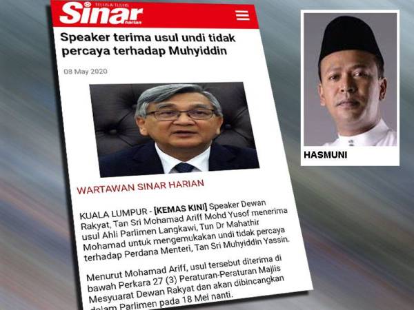 Sebelum ini, Sinar Harian melaporkan Mohamad Ariff menerima usul tidak percaya Dr Mahathir ke atas Muhyiddin.