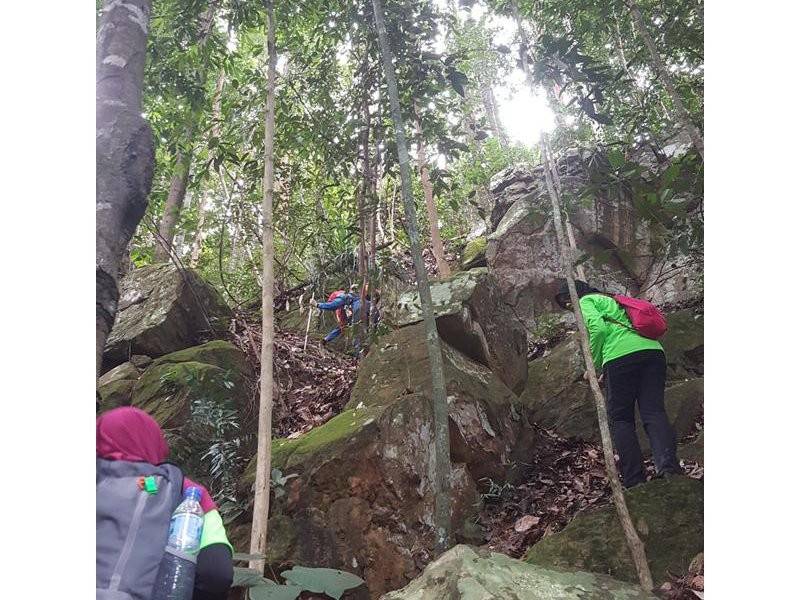 Setelah hampir empat jam mendaki laluan menuju ke puncak seakan tertutup dengan runtuhan buluh dan pokok berduri.